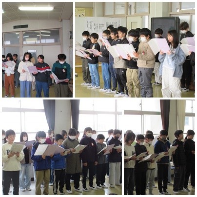 2学期の後半から、卒業式に向けて、合唱の練習を始めています。中学校から音楽専科の先生を講師としてお招きし、合唱指導をしていただくのも今日で3回目となりました。今は技術的な「質」を高めている段階です。まっすぐ、遠くへ届ける声の出し方の練習をし、少しずつきれいな声を遠くへ飛ばすことができるようになってきました。個々の声が一つの合唱へと昇華していけるよう、さらにパート別で磨き上げていきましょう。