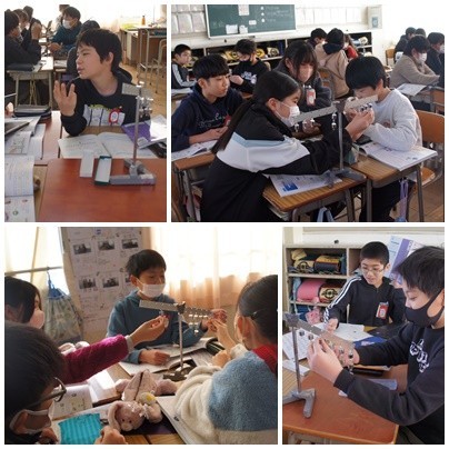 最近の理科の授業では、「てこのはたらき」について学習しています。実験結果からてこが左右で水平になるきまりを考察し、全体でまとめをしました。今日は学習したことを基に、グループごとに宮笑課題を作成しようと頑張りました。単純な問題にならないように、どのような条件を付けくわえるとよいのか、真剣に考えていました。作成した問題は次回の授業で解き合う予定です。今から楽しみですね!