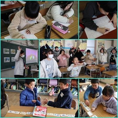 今日は、外国語活動がありました。乗り物を英語で答えたり、動作を入れて表現したりして楽しみました。また、カードを使ってペアでゲームにも取り組み、とても盛り上がりました。次の外国語も楽しみですね。