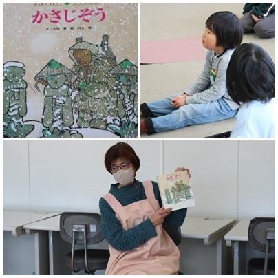 ナンジャモンジャさんによる昼読みがありました。今日読んでいただいたのは「かそこじぞう」です。おじいさんは大切な「かさ」を、お地蔵さまに一つずつかぶせてあげました。その日の夜。 しんしんと雪が降るなか、外から「よいさ、よいさ」と不思議な声が聞こえてきます。 おじいさんとおばあさんの家の前にやってきたのは、なんと……!優しい気持ちが奇跡を起こす、冬にぴったりの名作です。 読み終わったあと、みんなもきっと優しい気持ちになれるはずですよ。