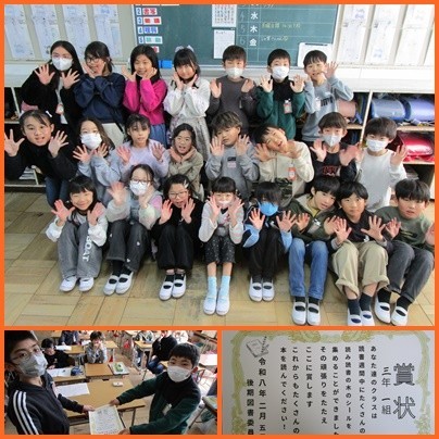 給食のときに図書委員会の子が、読書週間に読んだ本の数が多かったクラスに表彰状を持ってきてくれました。図書委員会のみなさん、すてきな取組をありがとうございました。