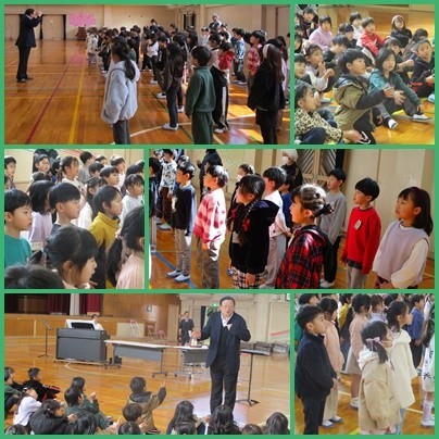 今日は、富澤先生に合唱指導をしていただきました。きれいな声の出し方や、どんな気持ちで歌うとよいかなど、たくさんのことを学びましたね。授業の最初と最後では、見違えるほどきれいな歌声で歌えるようになりました。今日学んだことをこれからに生かしていきましょう。