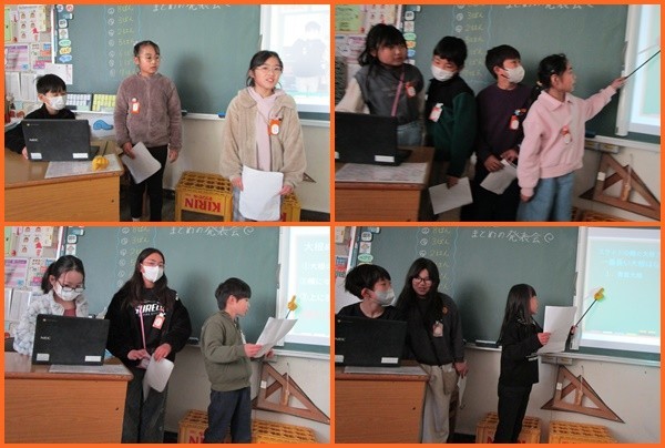 3年生になってから初めて取り組んだ「総合的な学習」。今日は各グループでこれまで学んだことをまとめた発表会をしました。