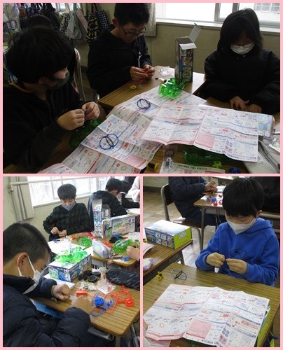 理科の学習では、「コイル100回巻きチャレンジ」に真剣に取り組みました。細いエナメル線が絡まらないように気を配りながら、一周ずつ「1、2、3……」と丁寧に指先を動かしていきます。100回という気の遠くなるような回数ですが、磁力の強さを左右する大切な作業。どの子も集中力を切らさず、黙々と巻き上げる姿に高学年としての粘り強さを感じました。