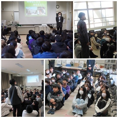 本日の6時間目に、中学校から2名の先生方にご来校いただき、中学校の生活について説明をいただきました。