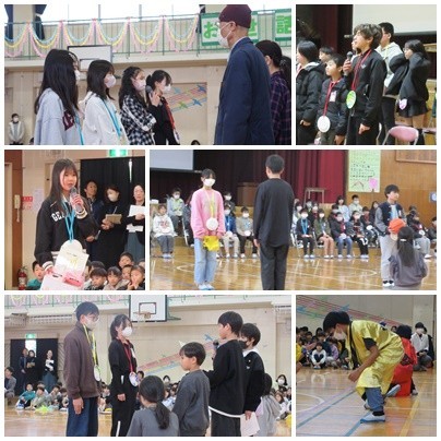 今日は、6年生のために「6年生を送る会」を開いてくれました。体育館に入場した瞬間、下級生のみなさんが作ってくれた華やかな飾り付けが目に飛び込んできました。各学年からの出し物は、どれも工夫がいっぱいで、これまでの学校生活を思い出させてくれるものばかりでした。