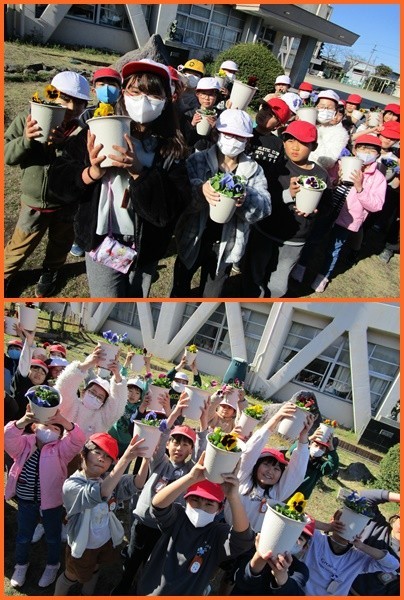 卒業式に3年生は出ることができません。そこで、6年生のために式場を飾るパンジーの植え替えをしました。花の植え替えは初めて、という子が多かったようですが、見本を見ながら40鉢全部を植え替えることができました。ありがとう!3年生が植えたきれいなパンジーが6年生の卒業をお祝いしてくれるはずですよ。
