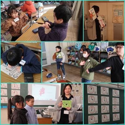 また、どのクラスでも2年生最後の外国語の授業が終わりました。最後の授業では、歌の合わせてダンスをしたり、時刻の言い方を勉強したりしました。授業の最後には、ALTの先生へ感謝の手紙を渡して、写真を撮りました。1年間たくさん英語の勉強をして、単語を覚えましたね。また、3年生ではどんな学習をするか楽しみですね。