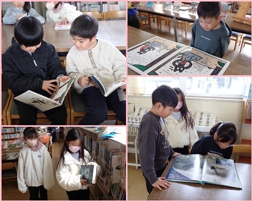 後半は、4月から使うことのできる図書館を一足先に探検しました。短い時間でしたが、夢中になって本を探していました。アニメや漫画で知っている作品の小説を見つけたり、魚の図鑑や料理の本など面白そうな本をどんどん手に取ったりしていました。「作り方をメモしたい!」「面白そうと思ったけど、絵がなくて字ばっかりだった…」「この本面白いよ!」「もっと読みたい!」と楽しそうに話していました。