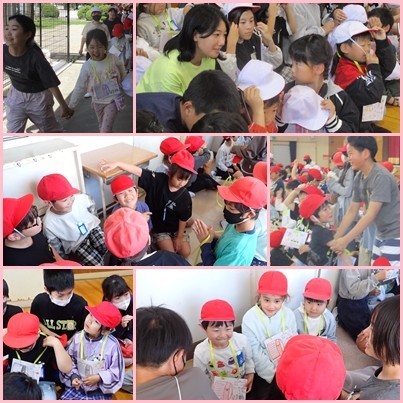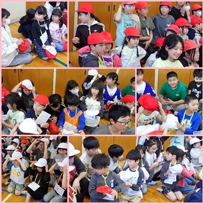手作りの入学証をもらって、ペアの6年生と手を繋いで入場しました。その後は、6年生と一緒に学校クイズに答えたり、ジャンケンをしたりしました。温かな雰囲気の中、笑顔いっぱい楽しい時間を過ごすことができました。