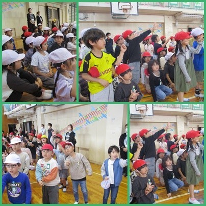 温かい拍手をしながら1年生の入場をみつめていました。5年生の企画してくれた宮小クイズとじゃんけんに楽しんで参加しました。宮小クイズでは、2年生にとっては難しいクイズもありましたが、近くの友達と相談しながら正解にたどり着くことができました。