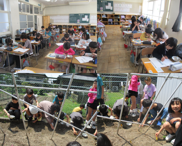 今日は晴天に恵まれ、3組でもヘチマの観察と種まきを行うことができました。