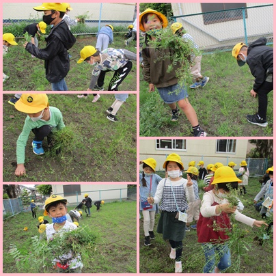 4月14日(水)、生活科では野菜を育てるので、ひとりずつ何を育てるか決めました。また、さつまいも畑に行って草取りをしました。自分たちで野菜を育てるのが楽しみですね。