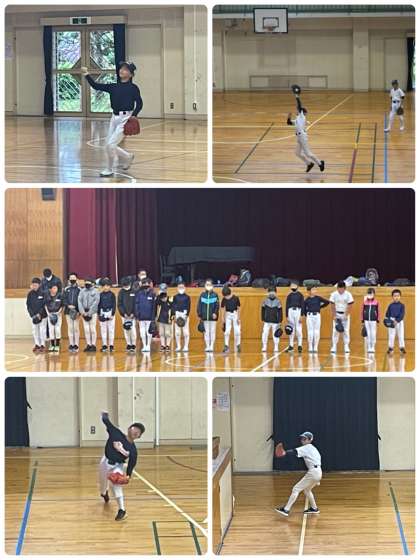 宮田カージナルス(6年以下)は、雨の為午後から体育館で練習しました。ピッチング練習をしたり、基本の捕球のしかたなどを練習しました。