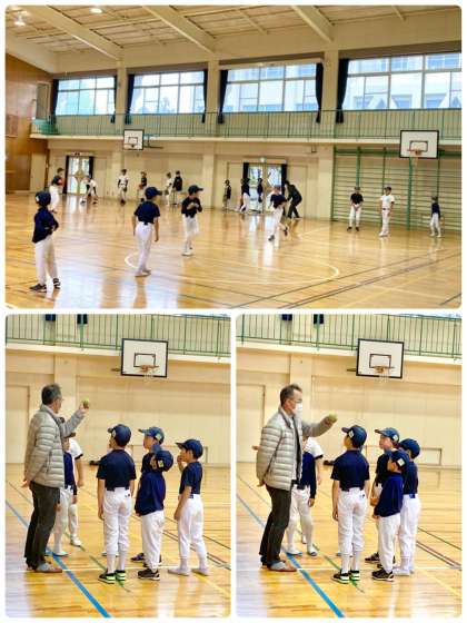 宮田ヴィッキーズ(4年以下)も、雨の為午後から体育館での練習。ボールを捕球する時の姿勢やステップを踏みながら相手がとりやすいボールを投げる練習しました。今日の基本練習を忘れずにしましょう。