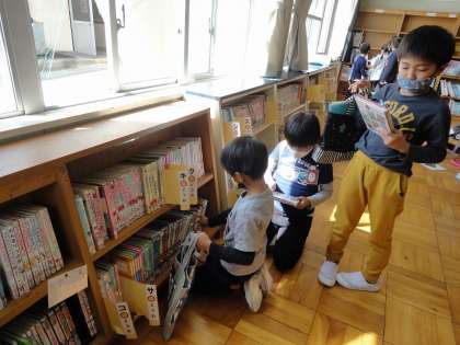 早速「おすすめの本」を借りて読む子もいました。これからたくさんの本に親しんでいきたいですね。