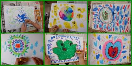 図工の時間は クレヨンを使って「世界にただひとつだけ」のおひさまを描きました。