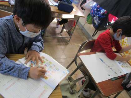 4月21日(水),算数科では表とグラフの学習をしています。調べたいことが増えると難しく感じるところもありますが、よく確認して整理していました。