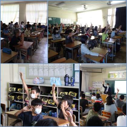 今日は小牧税務署から講師の先生をお招きして、各クラスで租税教室が開講されました。子どもたちも消費税という形で馴染みのある税金ですが、消費税以外の税金の種類や使い道、税金がなかった場合どうなるのか、ということまではなかなか想像が及ばなかったと思います。本日の講習を通して、税金が身の周りのどんなことに使われているか、税金がなかったらどうなってしまうのかを考え、学ぶことができました。今日学んだ税金の重要性をしっかりと覚えておきたいですね。