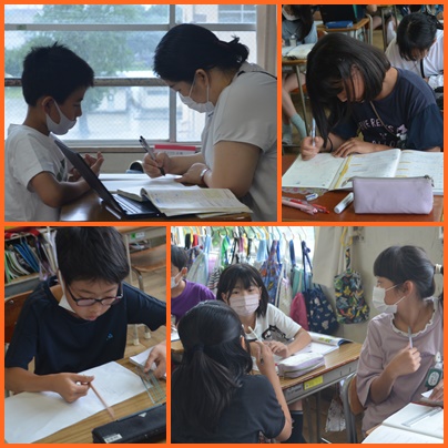 5年生の子どもたちは人が大好きです。友達,入ってくださる先生方などに親しみを込めてかかわることができます。学校の学習では,個人だけでなく,友達とかかわりながら「あ、そういうことか」と問題解決ができるように授業を展開しています。「先生と子ども」だけでなく,「友達と友達」の中でも学んでほしいと思います。