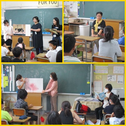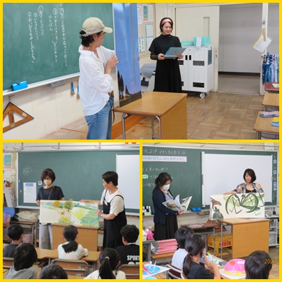 本日の朝、お話しナンジャモンジャさんに学級で読み聞かせをしていただきました。大型絵本やストーリーテリング、紙芝居で読み聞かせをしていただき、児童からは「おもしろかった」「悲しいお話しだった」など、様々な感想が飛び交っていました。