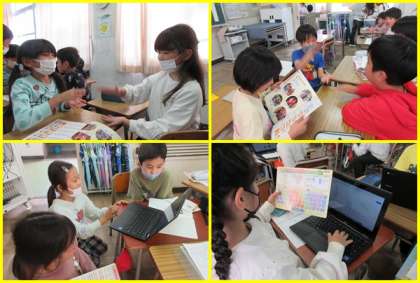 休み時間は、音楽で教えてもらったリズム遊びをしていた子がいました。ほほえましくて、写真をパチリ!クロームブックで検索するときには、国語で学習したローマ字打ちでがんばる姿もパチリ!
