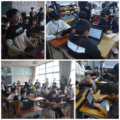 今日は先生たちの研修の一環で,1組に先生たちが来て,社会科の授業を見ました。子どもたちは自動車に関するさまざまな資料から,自動車の未来を考えました。かかわりながら「こういうことが読み取れるよ」「こういうことが考えられるよ」と,さまざまな見方で資料を見ました。一生懸命取り組む5年生の姿を,どの先生方もすごく褒めていました。高学年として,よい姿を見せることができましたね。よくがんばりました。