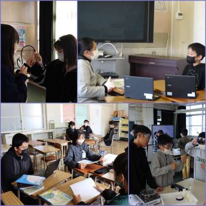 外国語の学習では、ALTの先生と英語でのコミュニケーションをしています。これまでに培った単語や文型を使って、自分の考えを伝えようとする姿が見られます。