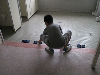 今日の「ぬきうちスリッパチェック」をしていたら,スリッパをそろえる姿を発見!!