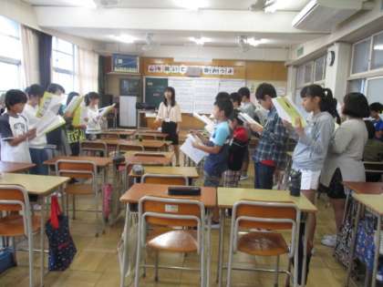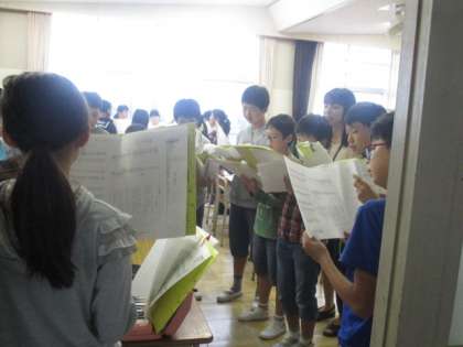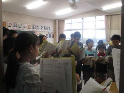 6年生はさすがです。自分たちの歌声を聞きながら、改善点を考えることができます。歌うときの注意点をしっかりと意識しながら歌うことができます。パートごとに何度も歌い込んでいます。「いのちの歌」歌詞に込められた心を感じながら美しいハーモニーを響かせようと練習しています。
