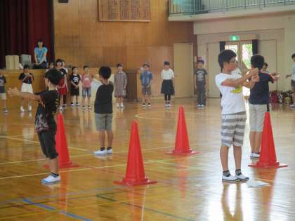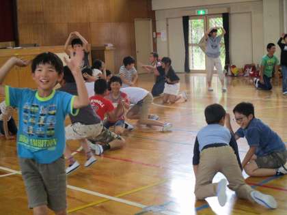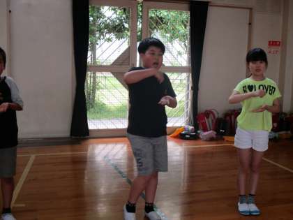 体育館でキャンプファイヤーの練習をしました。だんだんと上手に歌や踊りが踊れるようになってきました。今後も練習を重ねていきます。