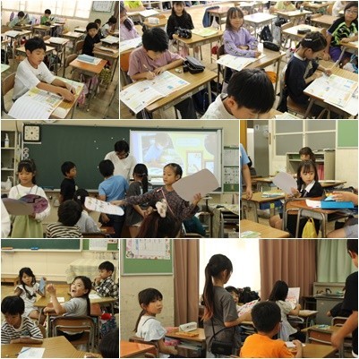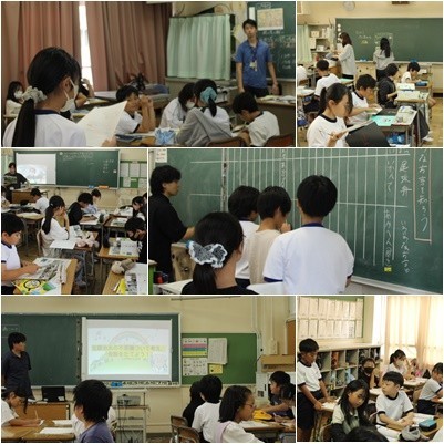 5時間目の草の井っ子の様子です。5年生の授業では尾張地方や他の都道府県の方言について調べ、それを黒板に書き出していました。