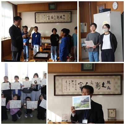 今日は朝礼が行われました。校長先生からは学習発表会についてのお話がありました。本番に向けて練習で失敗をすることがあってもその失敗を生かすこと、最後まで諦めずにがんばることを意識してほしいというお話でした。朝礼の前には、書写コンクールやスポーツの面でがんばった皆さんの表彰を行いました。