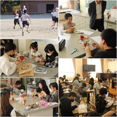 6時間目のクラブ活動では、華道クラブがひと足早くクリスマスをテーマに作品づくりに取り組んでいました。どの児童も自分のアイデアを生かしながら、楽しそうに飾りつけをしていました。