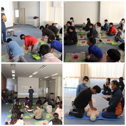 今日は江南消防署の消防士の方をお招きして、5年生が応急手当訓練に取り組みました。心臓マッサージの仕方やAEDについて学習を深めました。消防士の方から、「もし何かあったら、皆さんが、119番するかもしれない」と告げられ、要救助者がいたらどうやってその場所を伝えるのか、真剣に考えていました。こうして、実際の消防士の方からお話をいただくことで、小学5年の自分たちにもできることがあると実感できていた子が多くいたと思います。
