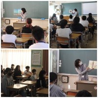 3時間目の授業の様子です。青空のもと2年生は運動場でかけっこの練習をしていました。4年生は習字ではらいやはねを意識して「花」の練習をしていました。