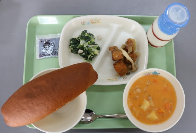 10月10日は目の愛護デーです。今日の給食に入っている、さけのアスタキサンチン、ほうれん草やにんじんのカロテン、ブルーベリーのアントシアニンは目の健康を保つのに効果的な栄養素です。
