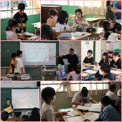 5年生の算数では、直角三角形の面積の求め方の学習をしました。グループで話し合い、発表しました。話し合い活動や発表の時には、たくさんの意見が出て、学びを深めていました。
