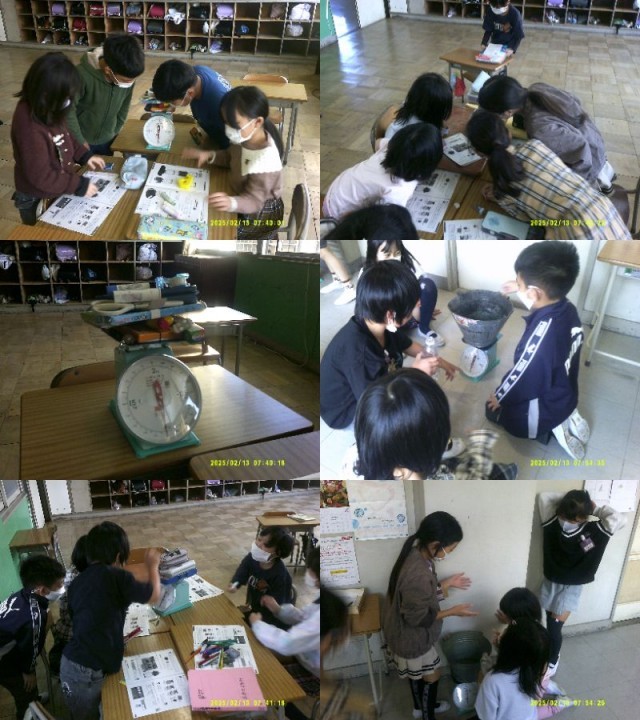 今日ははかりをつかって1㎏がどれぐらいか、自分の持っているものを使って測りました。