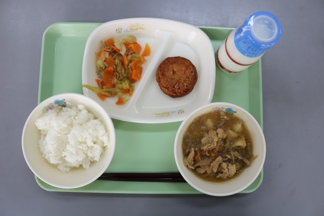 にんじんとちりめんじゃこいためは、6年生家庭科「まかせてね今日の食事」の単元に登場するメニューです。給食はアレンジして教科書のレシピにキャベツを加えました。