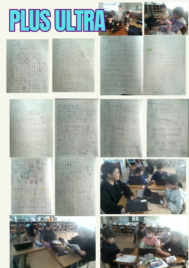 自動車の学習を進めています。班で仲良くまとめをつくっています。