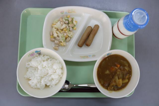 給食のカレーに一番たくさん入っている食材は、玉ねぎです。大量の玉ねぎを煮込んで作るので、うま味が増しておいしくなります。隠し味におろしりんごも入っています。