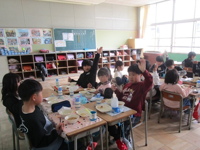 今週は全国学校給食週間です。給食委員会では全国学校給食週間に合わせて、「みんなで挑戦!ビンゴ大会」を行っています。給食時間の放送でクイズをしたり、「よく噛んで食べる」、「給食で出るごみを小さくまとめる」など様々なミッションにチャレンジしています。