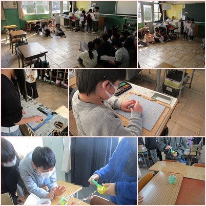 6年生は理科の授業で「発電と電気の利用」について学習しました。手回し発電機を使って発電し、発電した電気をモーターに流して、乾電池との違いを調べました。