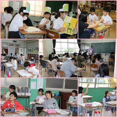 2年生国語の学習では、グループで役割にわかれて音読発表を行います。決まった役割のお面をつけて、どんなふうに読んだらよいか、グループの友達と話し合いながら練習していました。