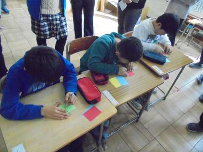 昨日の6時間目に、わかば学級で研究授業がありました。算数で学習した正方形、長方形、直角三角形の形を切り取り、それをCDに貼り付けて「こま」を作りました。わかば学級の児童は、一生懸命取り組み、良い作品を作ることができました。