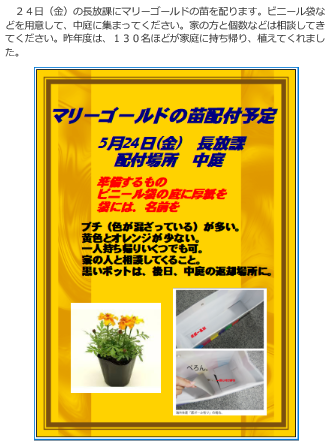マリーゴールドの苗配付について