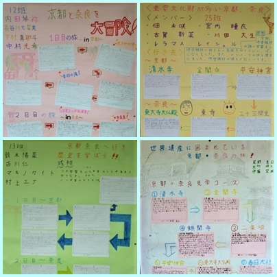 6年生の廊下には,明日から出かける「京都・奈良」の調べ学習が掲示されています。調べたことを自分の目で確かめ,日本の歴史を感じてほしいです。同時に,仲間と触れ合いながら,思い出に残る「修学旅行」になることを願っています。
