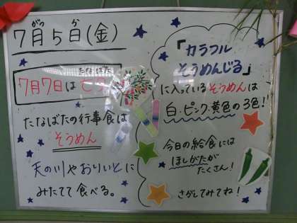今日は七夕メニューがでました。明後日天の川がみられるでしょうか…