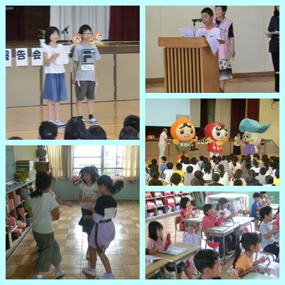 1日(月)は、人権の花「中間報告会」を行いました。栽培委員会を中心に、6月11日に種まきをし、芽が出て、成長してきた様子を報告しました。翌日には、間引き、草抜きを行い、すくすく成長できる環境づくりをしました。